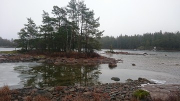 Efter nån timma började suget påminna sig och vi pausade i Kagensviken. Nu hade vi ju valt en väl blåsig dag,så skönt var det inte. Som tur var hade en energikaka slunkit med i fickan.